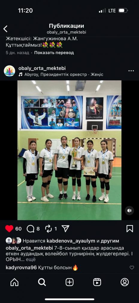 7-8-сынып қыздар арасында өткен аудандық волейбол турнирінің жүлдегерлері. І ОРЫН. Жетекшісі: Капаров Г.У.